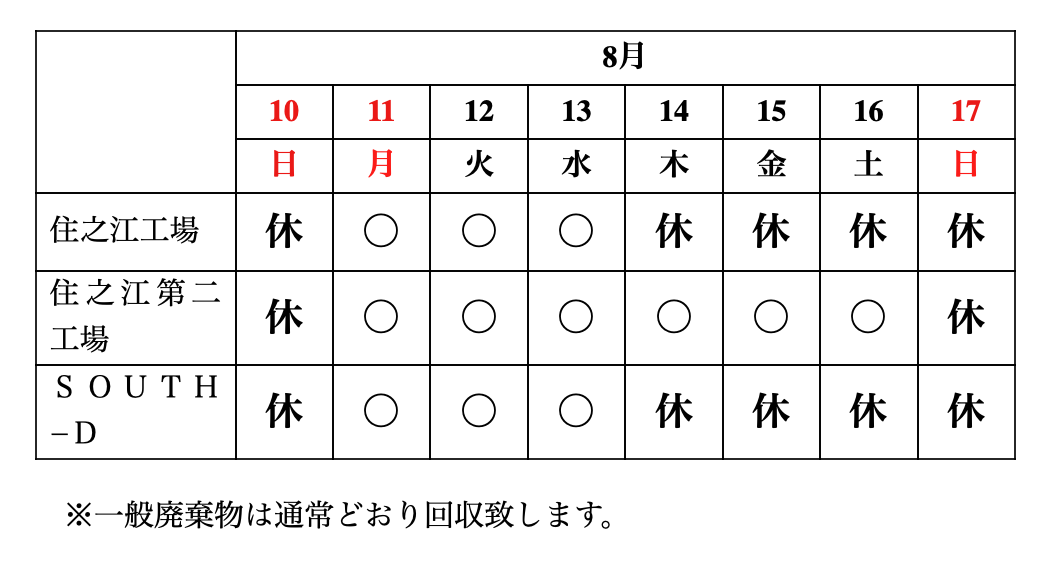 本年の夏季休業は以下のとおりとさせて頂きます。
